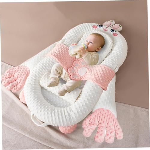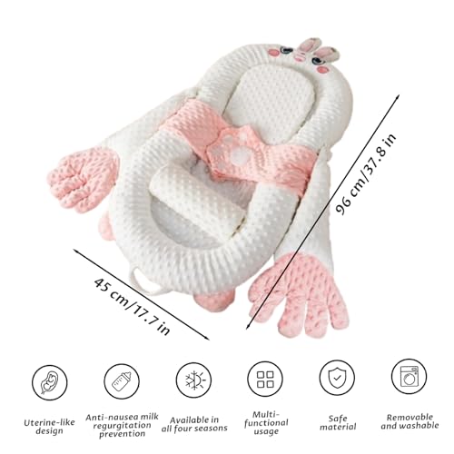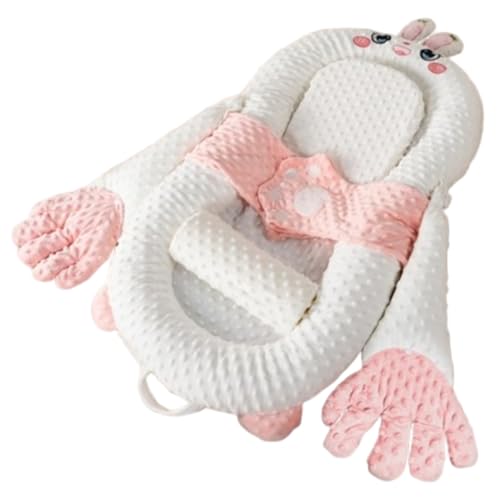 Portable Baby Lounger Soft Comfortable Reversible Infant Lounger Pillow with Comforting Hands Foldable Removable Bunny Snuggle Nest for Newbo