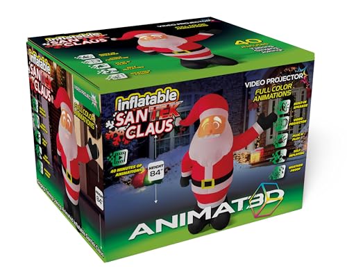 - Plug’n Play Outdoor / Weather proof Inflatable Santa Claus with Patented LED Light Array Projector + Built in Speaker