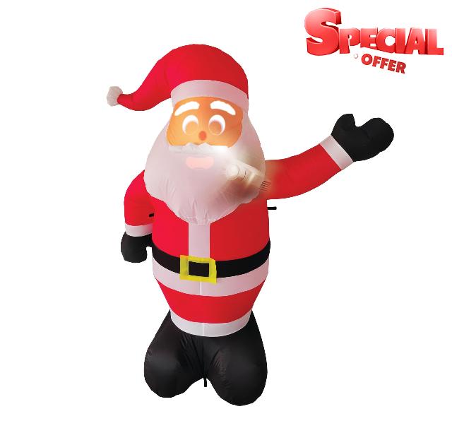 - Plug’n Play Outdoor / Weather proof Inflatable Santa Claus with Patented LED Light Array Projector + Built in Speaker