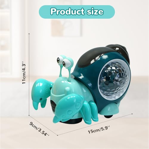 【Intelligent Obstacle Avoidance Function】Music Light Educational Snail Toy features a built-in automatic sensing system that automatically turns around when encountering obstacles, allowing for unimpeded forward movement. Flexible omnidirectional wheels allow it to glide freely on floors or carpets, allowing babies to crawl alongside it, developing hand-eye coordination and motor skills.