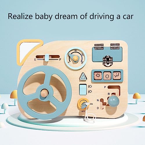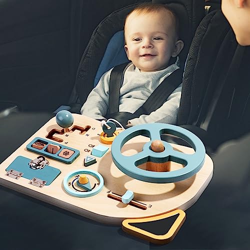 - [Engaging & Educational Toy] The steering wheel activity board is designed to captivate children's attention while fostering their cognitive and motor skills. with its interactive wooden dashboard, this toy provides endless fun and learning opportunities for kids of all ages and abilities. the engaging design encourages exploration and helps develop focuses and concentration.