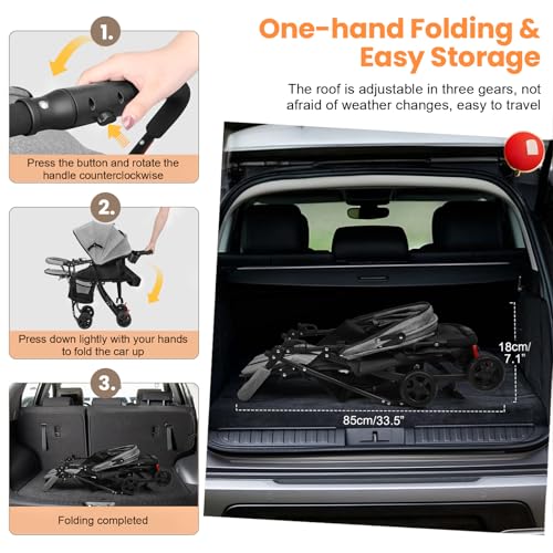 - One Hand Folding Design: Weighing only 4.2 kg, this compact stroller folds easily with one hand and fits neatly in car boots or overhead compartments. Perfect for travel and urban life, this foldable pushchair lets parents carry it on the shoulder effortlessly, ideal for commuting, short holidays, and shopping trips.