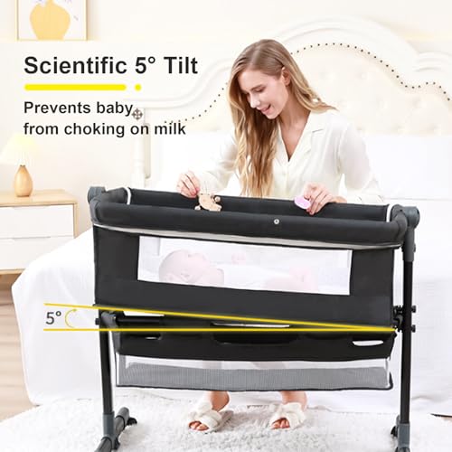 - ⭐ Breathable Mesh & Spit-Up Prevention: Featuring dual-side breathable mesh windows for optimal airflow and visibility. The crib base can be tilted up to 10° in anti-spit-up mode to help reduce choking risks and ensure baby’s comfort after feeding.