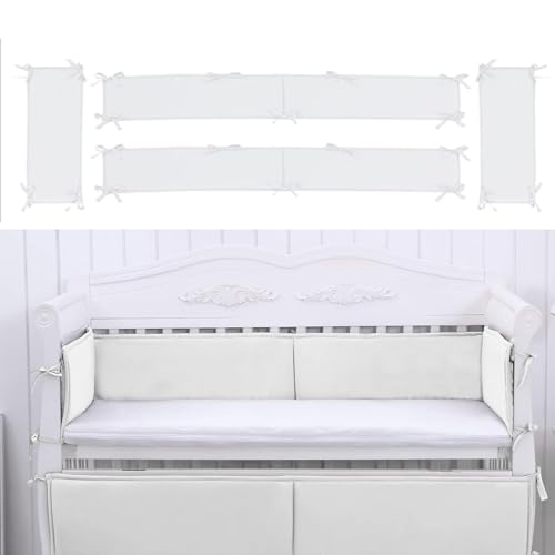 4Pcs/Set Crib Rail Covers, Protect Your Baby's Crib, Reduce Collisions, Solid Color Heightened Cot Teething Rail, Breathable Mesh Liner Anti-Collision Pads, for Toddler Safety(White)