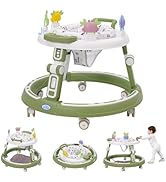 5 in 1 Baby Walker Round Shape Foldable Walker 3-Height Adjustable Anti-Rollover Push Along Walkers with Music Center,Silent Wheels,360° Rotatable Cushion for Girls Boys 6-18 Months
