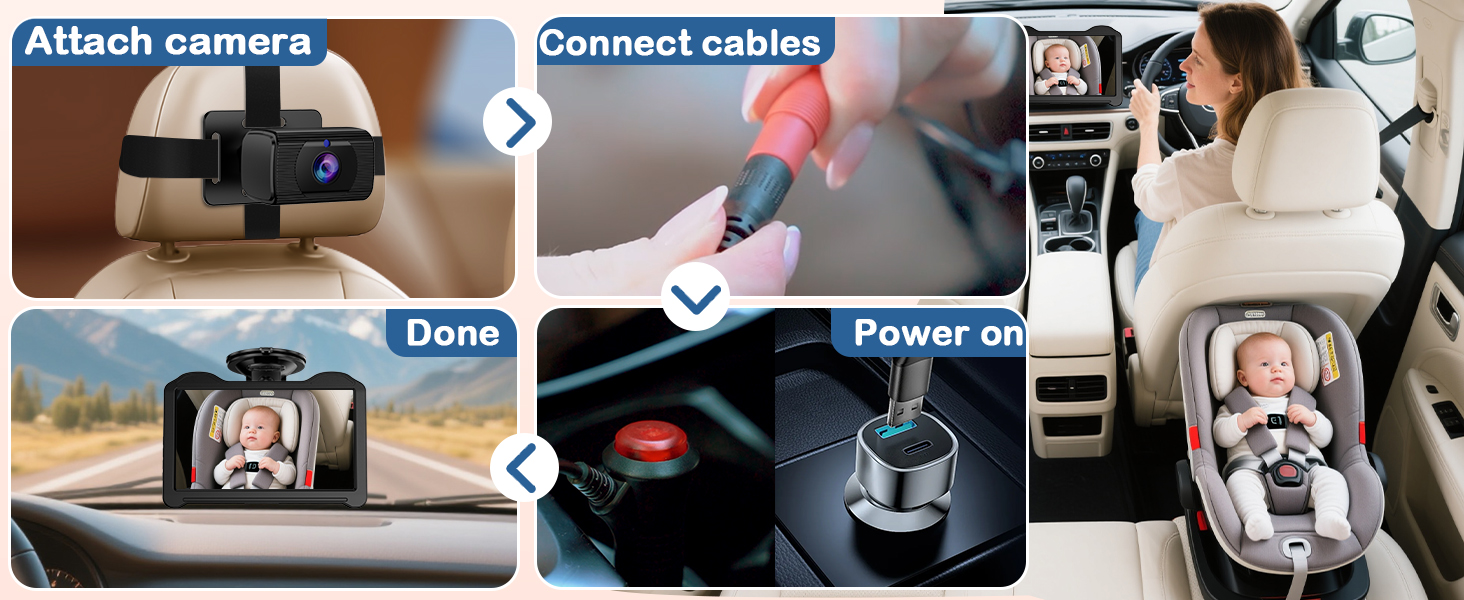 - Family Must-Have – Thoughtful Gift for New Moms & Baby Showers: The baby car camera is a top pick for baby registries and baby shower gifts—especially loved by new moms. This rear-facing baby monitor helps parents stay connected to their little one while driving, offering real-time safety and peace of mind. Whether you're gifting it to a friend or adding it to your own parenting toolkit, this backseat baby camera is an essential travel safety upgrade every family needs