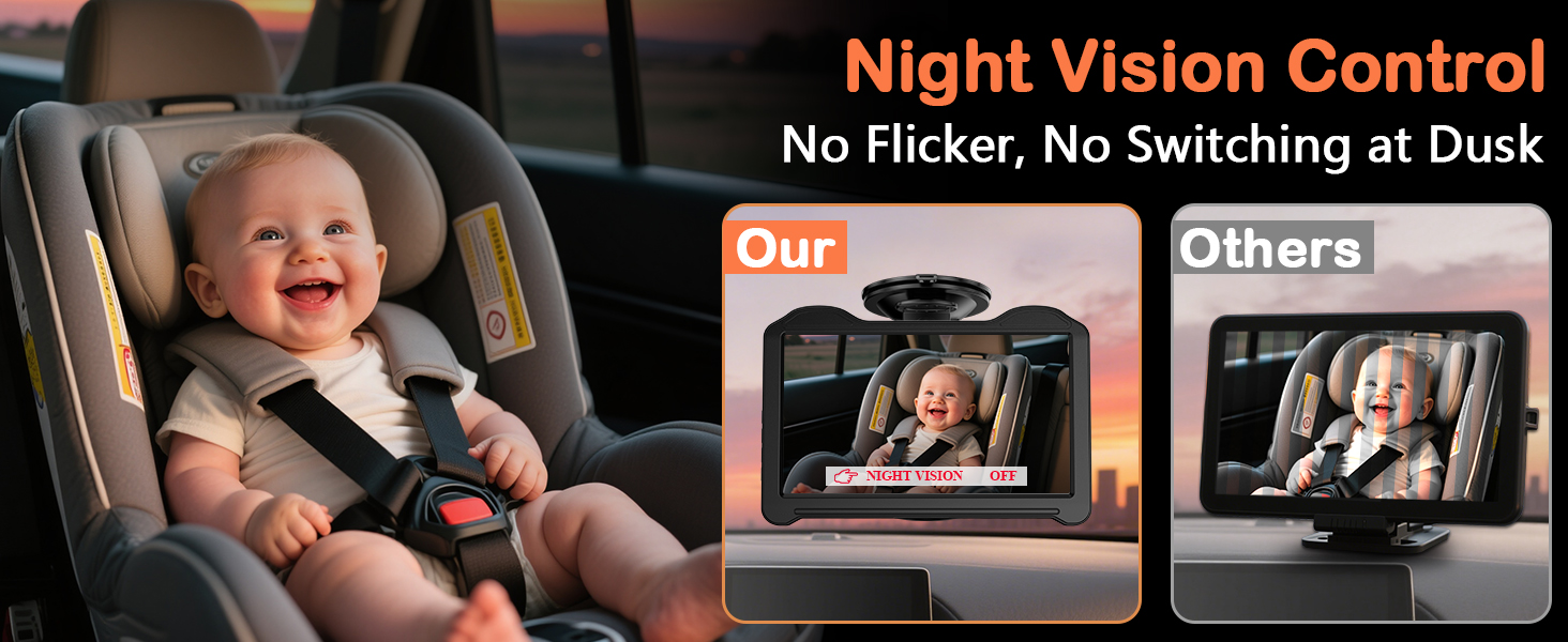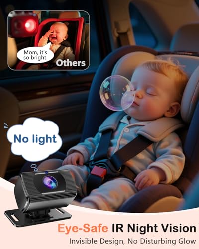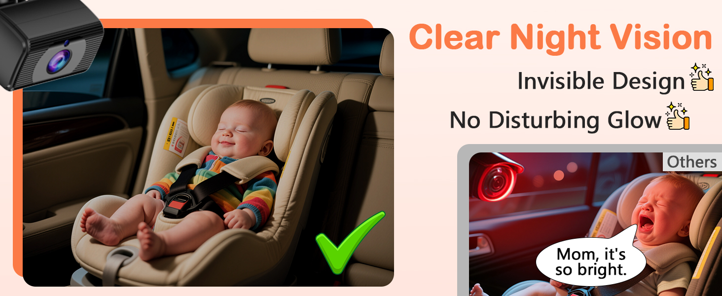 - Safe Infrared Night Vision – Gentle on Baby’s Eyes: Equipped with an advanced IR light, this baby car camera delivers crystal-clear night vision without red glow, ensuring no eye irritation or sleep disruption for your infant