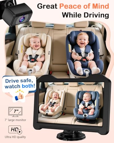 7 Inch HD 1080P Baby Car Camera with IPS Monitor, Easy to Setup and Install
