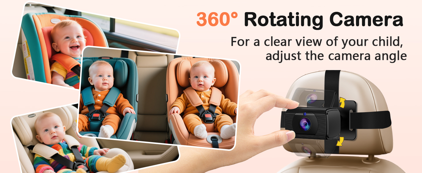 - 360° Adjustable Camera – Monitor Any Angle: Easily rotate and tilt the camera to get the perfect viewing angle. Keep an eye on rear-facing or front-facing car seats, two kids, or multiple angles with one quick adjustment