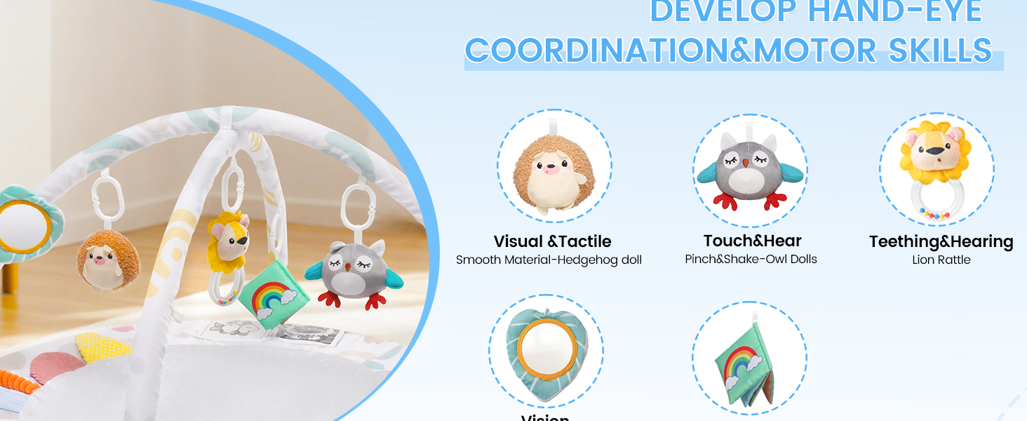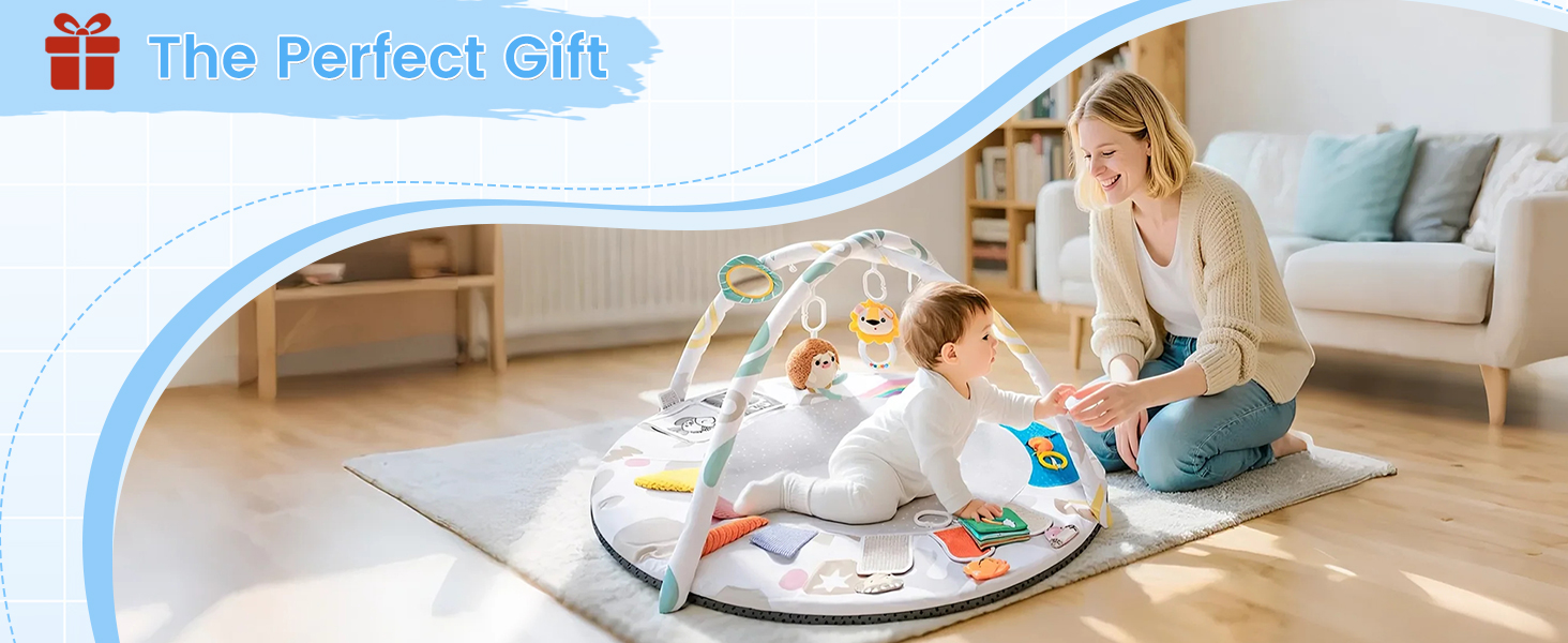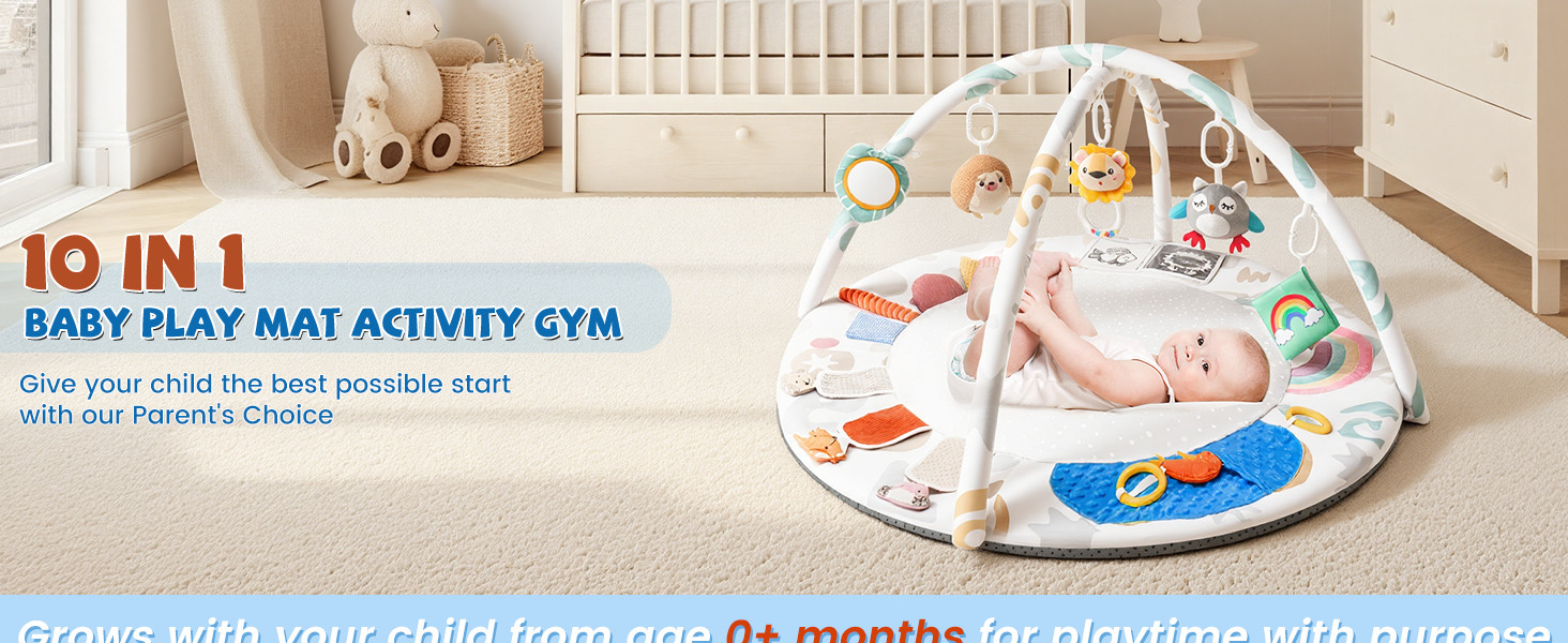 - Home-Friendly Design: The activity gym with matching play mat boasts a contemporary minimalist design, making it an attractive addition to any living space