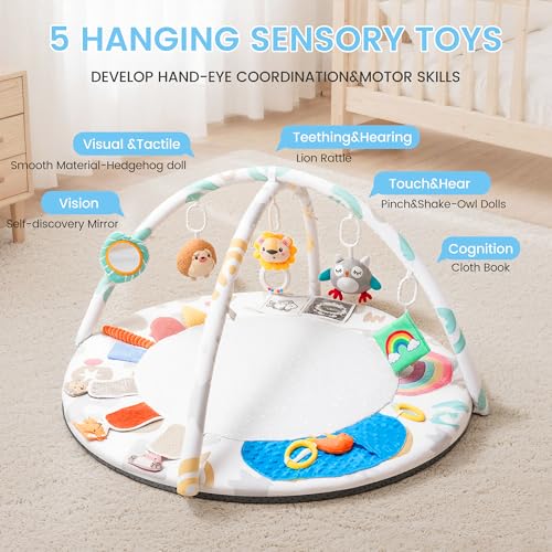 Baby Play Gym & Activity Mat | Activity Playmat with 5 Hanging Toys | Sensory