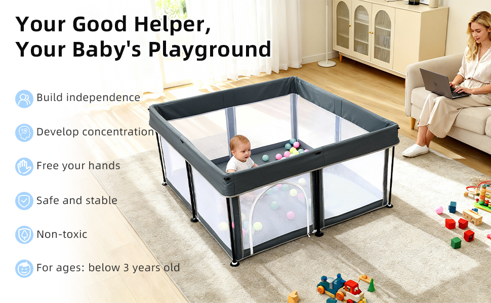 - Ideal for indoor or Outdoor Use: Whether at home, outdoors, or visiting family, this playpen for babies and toddlers makes parenting more convenient.