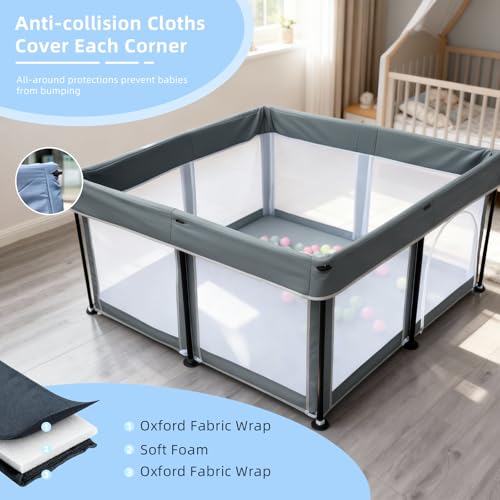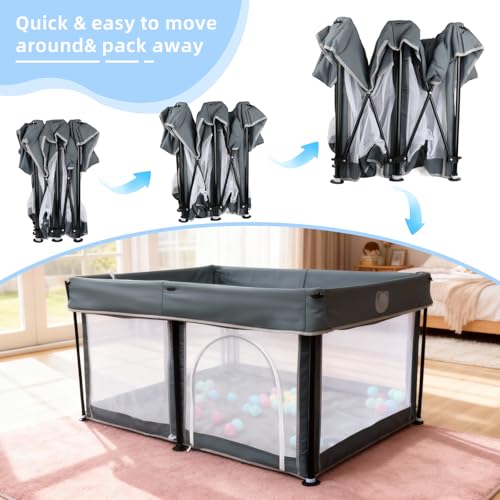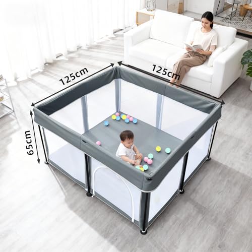 Baby Playpen Foldable with Mat 125x125cm Portable, Safe, and Spacious Collapsible Play Pen with 40pcs Ocean Balls for Baby and Toddlers, Safe & Durable for Indoor and Outdoor Use(Dark Grey)
