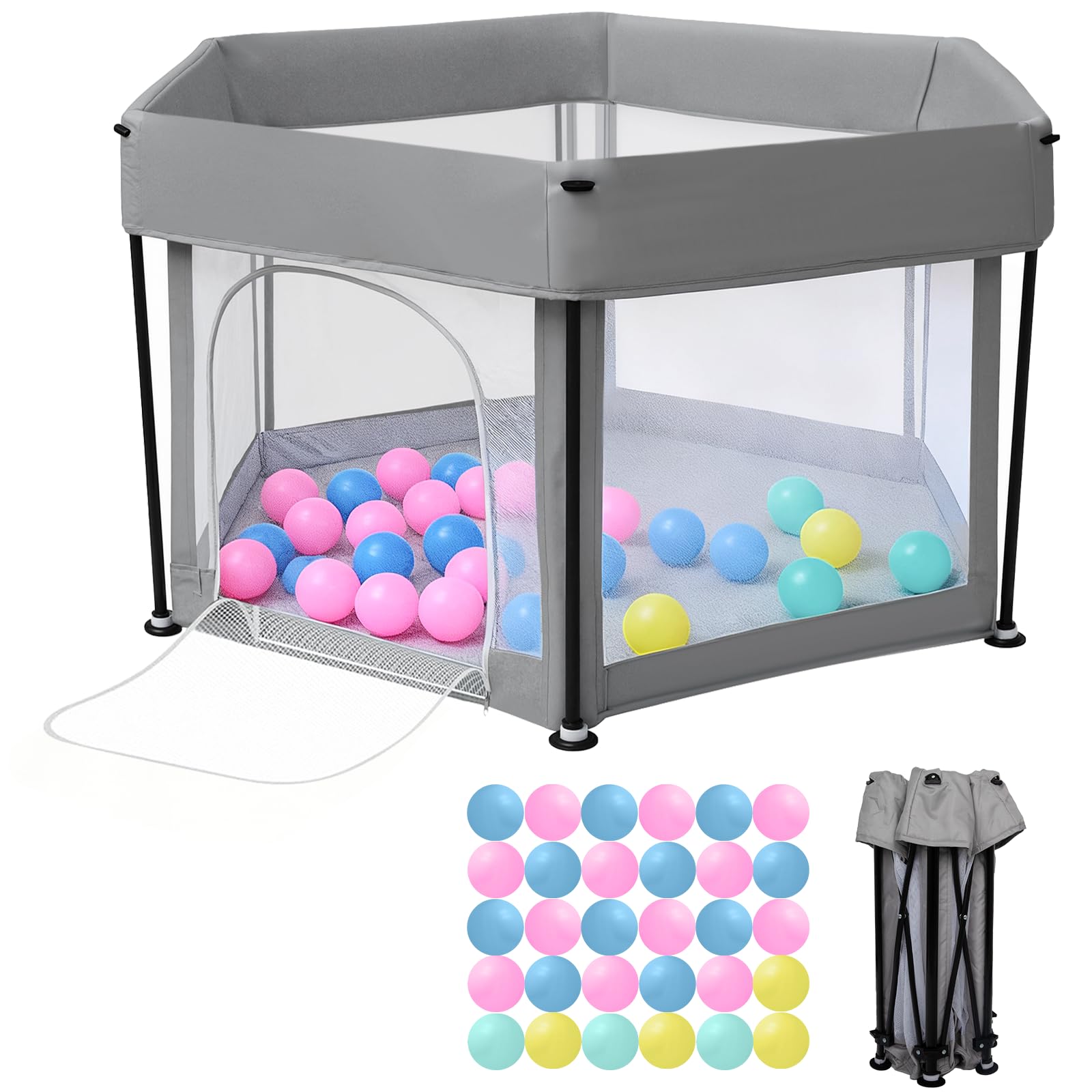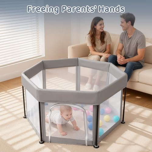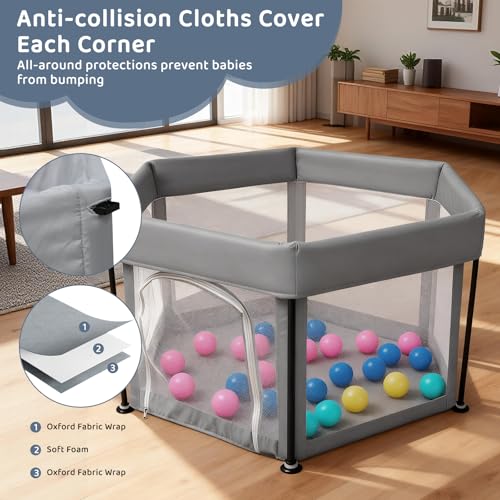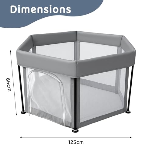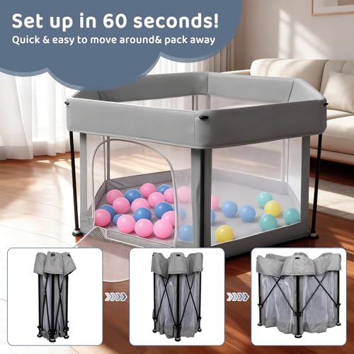Baby Playpen Foldable125x66cm Portable, Safe, and Spacious Collapsible Play Pen with 30pcs Ocean Balls for Baby and Toddlers, Safe & Durable for Indoor and Outdoor Use(Light Grey)