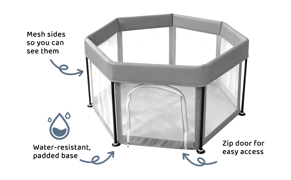 - Spacious Play Area: The included fitted floor mat provides a soft and hygienic surface for your baby to crawl and play, and keeps your child’s space cozy and contained.