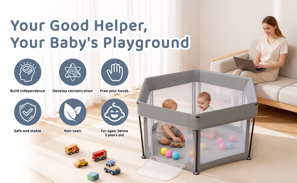 - Ideal for indoor or Outdoor Use: Whether at home, outdoors, or visiting family, this playpen for babies and toddlers makes parenting more convenient.