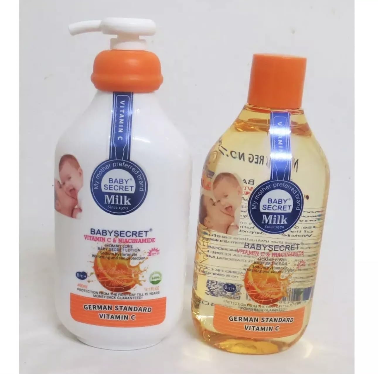 Baby Secret Vitamin C & Niacinamide Body Lotion 400ml + Oil 440ml – From Birth (2Pcs Set)