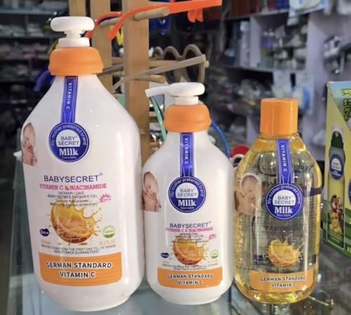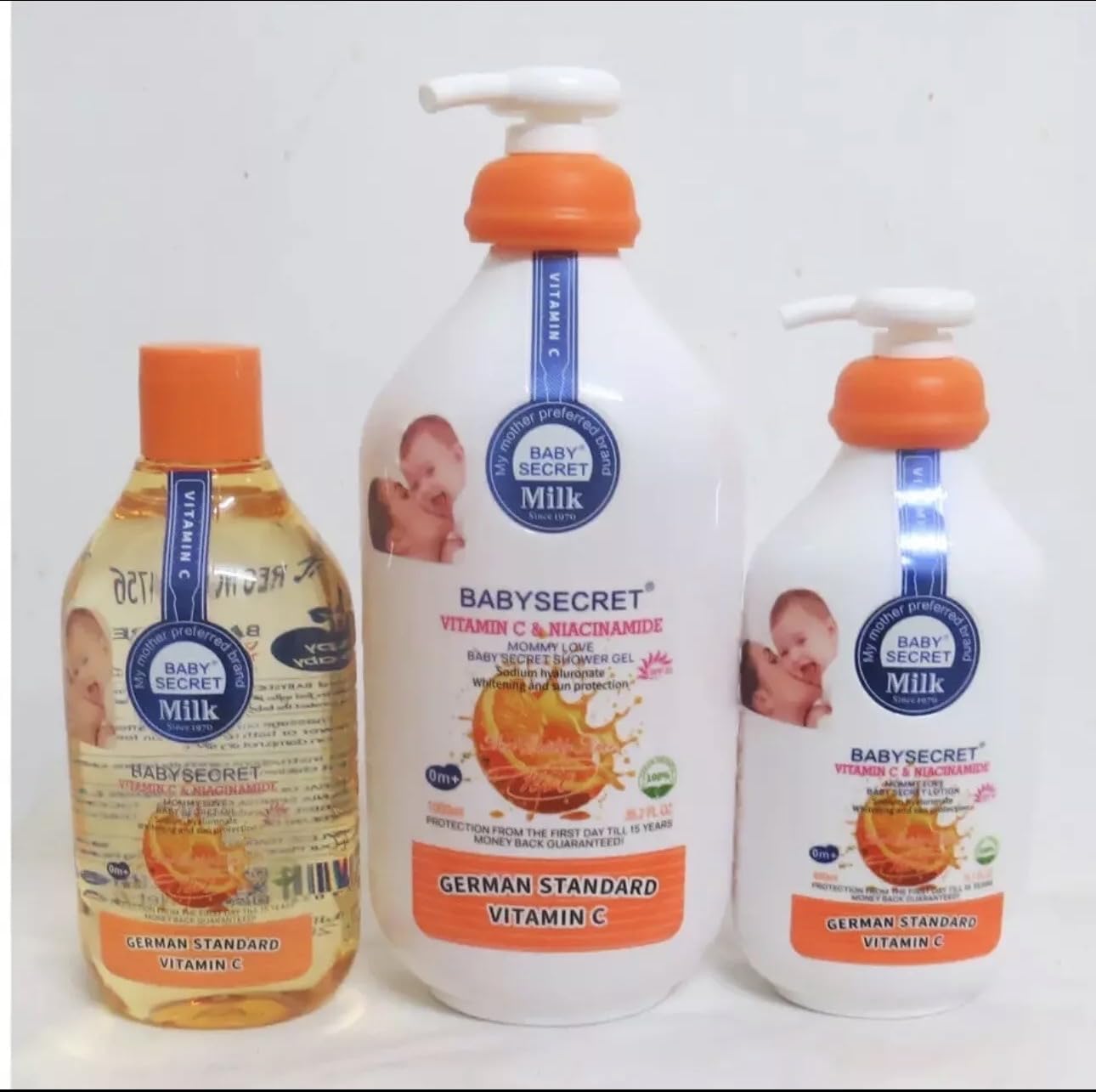Baby Secret Vitamin C & Niacinamide Body Lotion 400ml + Shower Gel 1000ml + Oil 440ml – 3Pcs Set – Protection from birth ph 5.5