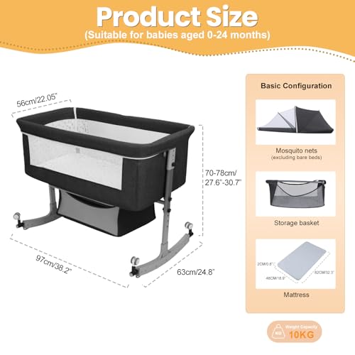 - 【Complete Package Ready to Use】 Everything you need is included: 1 x Baby Crib, 1 x Mosquito Net, 1 x Storage Basket, and 1 x User Manual. The compact size (approx. 100L x 60W x 79H cm) fits perfectly in any nursery.