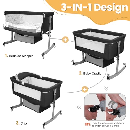 - 【3-in-1 Versatile Design】 This baby crib transforms to meet your growing child's needs: a secure bedside crib for co-sleeping, a gentle rocking bassinet, and a freestanding cot. It's the ultimate all-in-one travel cot solution from newborn to toddler.