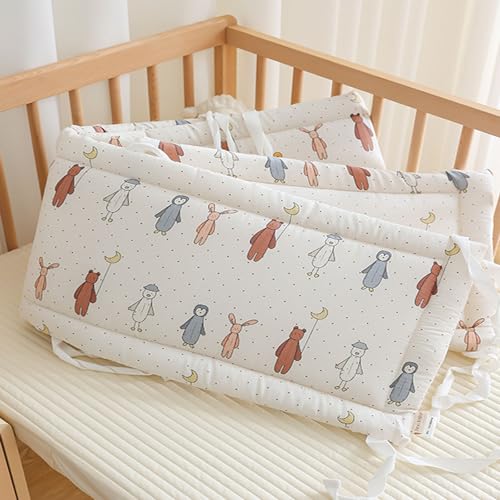 - 1. Premium Breathable Cotton Material for Skin-Friendly Safety :Crafted from high-density combed cotton gauze (or high-quality cotton fabric) with high-elasticity microfiber filling, our cot bumper is ultra-soft, skin-friendly, and non-toxic—perfect for babies' delicate skin. The breathable open-pore design prevents stuffiness, while the quilted edge construction keeps the filling in place and avoids shifting. It’s also wear-resistant and durable, resisting deformation even with long-term use, providing a safe and cozy environment for your little one.