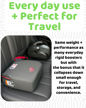 - EVERYDAY BOOSTER THAT TRAVELS – Rigid, durable child car seat for daily use, yet folds small like a portable car seat. Same weight as a traditional kids booster seat, with the bonus of compact storage.