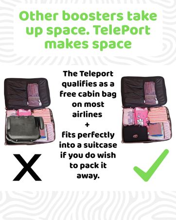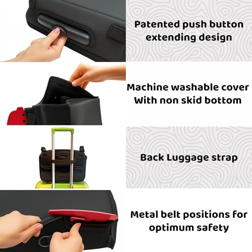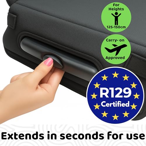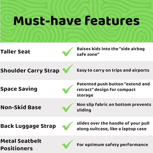 - PACKS SMALL, CARRIES EASY – Telescopic design compacts down with a shoulder strap for easy transport. Perfect travel booster seat for trips, taxis, school runs, carpooling and switching between vehicles.