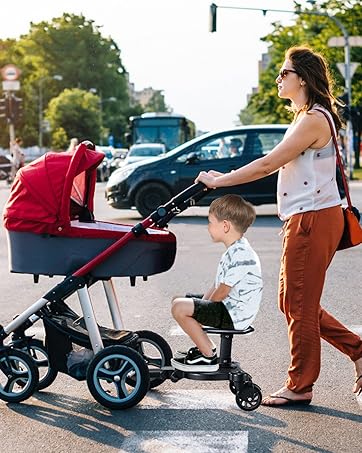 - 【Enjoy Your Family Time】Our buggy board is an ideal choice for families with two children, eliminating the need to purchase a second stroller. You can install this universal buggy board on your existing stroller, allowing older children to sit or stand comfortably. Let siblings travel together, enhance family interaction, and share a joyful journey