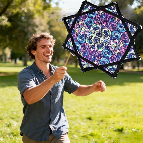 - 【Vibrant Dual-Sided Visuals】:Featuring brilliantly coloured patterns printed on both sides, this spinning cloth creates mesmerising visual trails in motion. The high-contrast designs remain vivid outdoors and indoors, making it perfect for stage performances, parties, and dynamic visual entertainment.