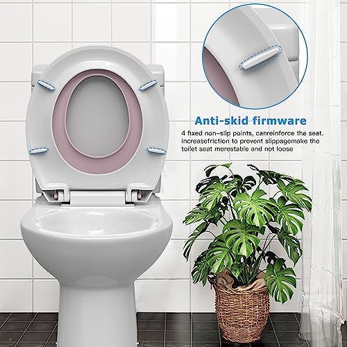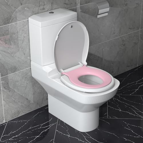 Garvee 2-in-1 Soft Close Oval Toilet Seat, Built-in Child Seat for Kids & Adults, White Family Dual-Purpose Toilet Lid, Pink