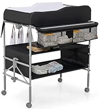 - ✔EFFORTLESS MOBILITY- The diaper changing station is designed with 4 universal wheels for easy movement. The lockable design ensures stability when in use, making it a safe and convenient option for your home nursery setup. Moreover, the wheels can be detached with ease. Suitable age: 0-12 months old; weight capacity: 11kg.