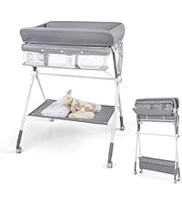 - ✔CONSIDERATE DESIGN- The sturdy metal tubes offer strong support, and the middle reinforced crossbar ensures additional sturdiness. Heightened 4 sides create a protective space for your baby, while the height gauge on the changing pad makes it easy to keep track of the baby's growth. In addition, there is a small trash can for added convenience.