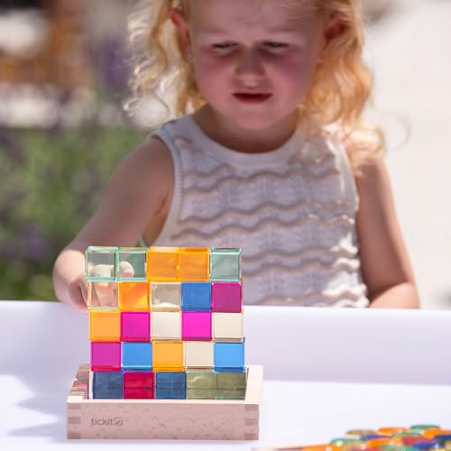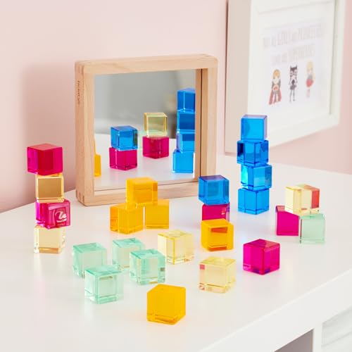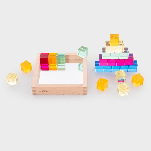 ickit Translucent Gem Cubes with Mirror Tray – Acrylic Colour Cubes in FSC® Wooden Tray – Sensory Light, Sorting and Counting Toy for Creative Learning Play