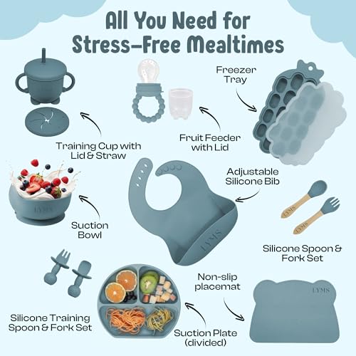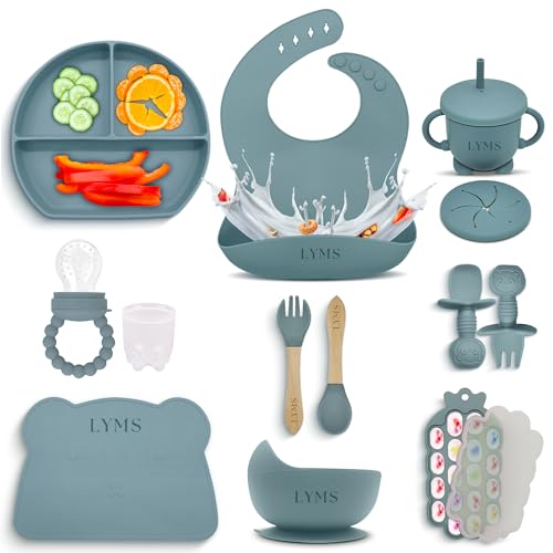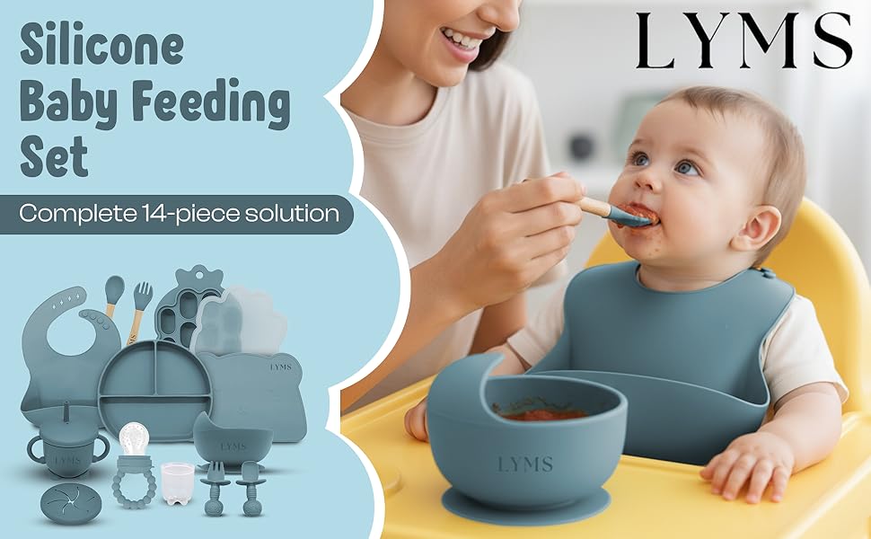 LYMS Baby Weaning Set 14pcs – Silicone Baby Feeding Set with Suction Plate