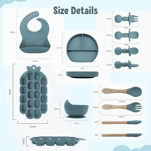 LYMS Baby Weaning Set 14pcs – Silicone Baby Feeding Set with Suction Plate, Bowl, Bib, Cup, Cutlery, Fruit Feeder & Freezer Tray – BPA-Free – for Babies & Toddlers (6M+) – Ideal Baby Gift (Blue)