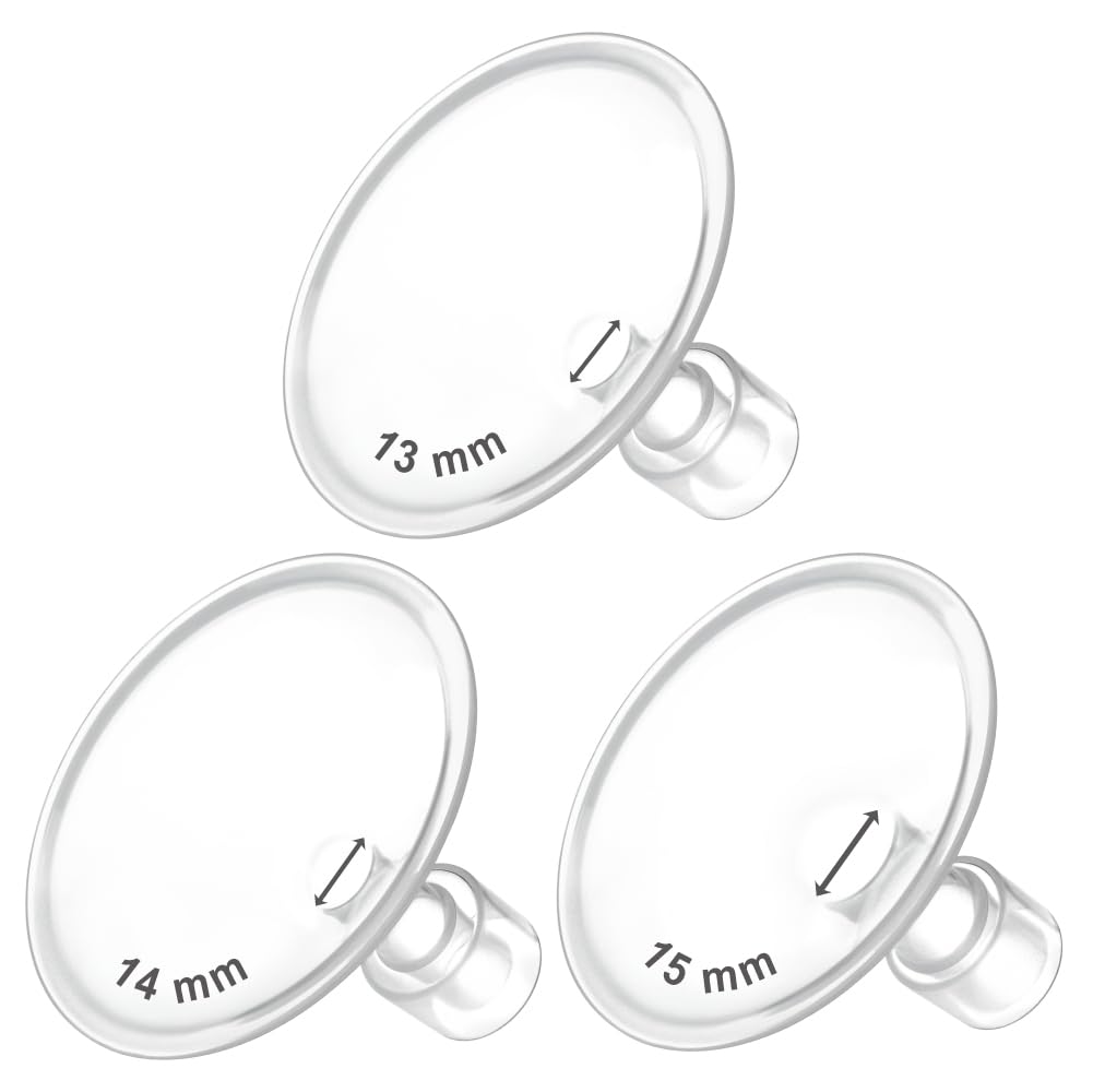 - Maymom MyFit Crater Shields – 13mm, 14mm, 15mm (1 Shield per Size). Compatible with Medela Pump in Style with MaxFlow Pro Pro+, Pump in style, Lactina, Symphony, Swing, Mini Electric FreeStyle, Swing Maxi, Sonata, Freestyle Flex and Harmony. NOTE: connectors are not included in this listing. Also compatible with Lansinoh SignaturePro SmartPump Manual Pump, replace Lansinoh Pump Parts, Lansinoh Flanges.