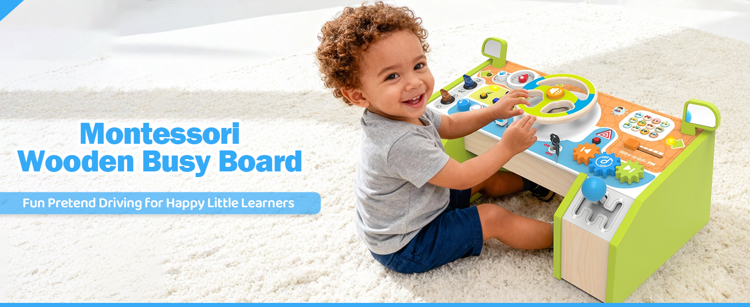 Montessori Wooden Steering Wheel Busy Board for Kids & Toddlers – Interactive