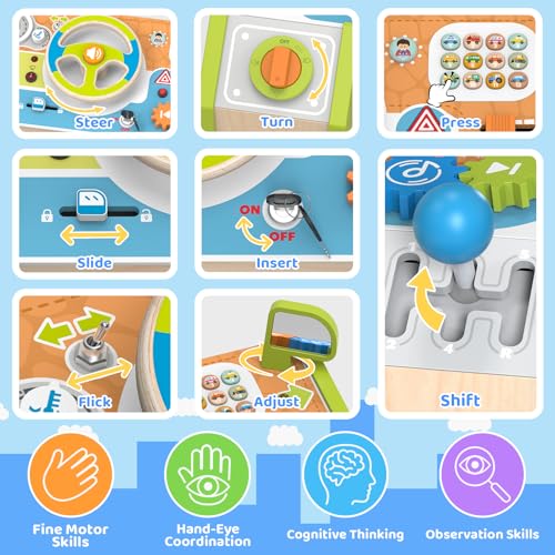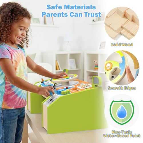 - Safe, Durable & Screen-Free Wooden Toy Ditch the Flimsy Plastic: Crafted from smooth, high-quality natural wood, this eco-friendly dashboard is built to last. A great sensory toy for kids with autism and a screen-free alternative to tablets. Designed with toddler safety in mind, it's sturdy enough for active boys and girls ages years old.