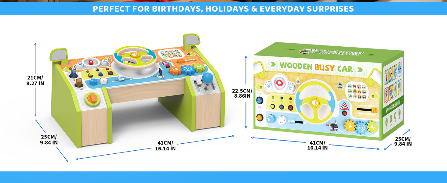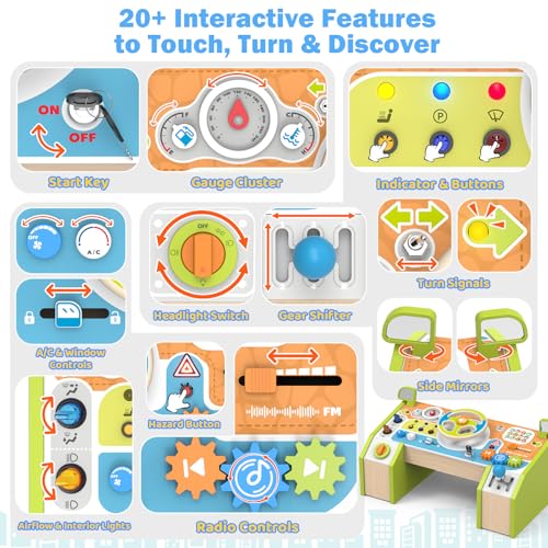 - A must-have Educational Gift for Boys & Girls: Looking for a birthday or Christmas gift for kids grandkids that's fun and educational? This pretend play wooden driving simulator is a top pick for holiday toys and preschool learning gifts. Encourage hands-on discovery and imaginative play for toddlers with this all-in-one fine motor and sensory toy.