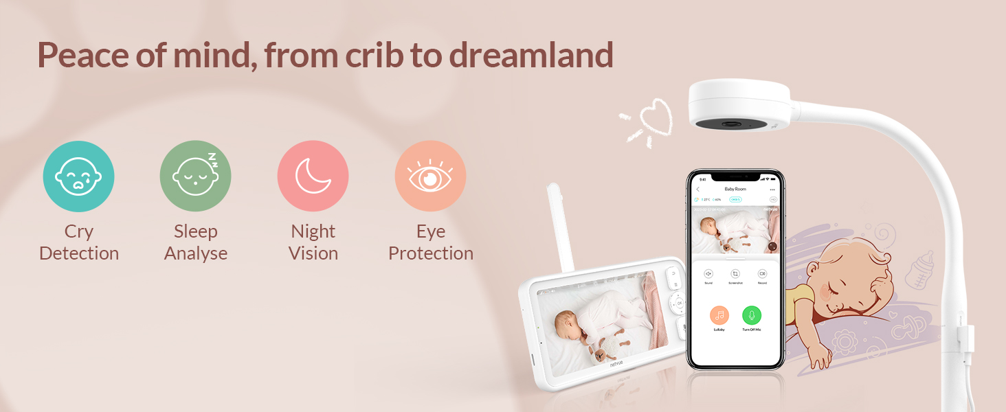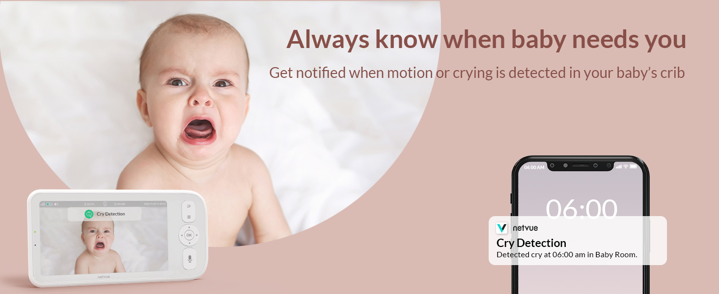 - Cry Detection and Feeding Reminders: Netvue baby monitor with camera and night vision instantly notifies you when your baby is hungry or crying, enabling you to respond promptly