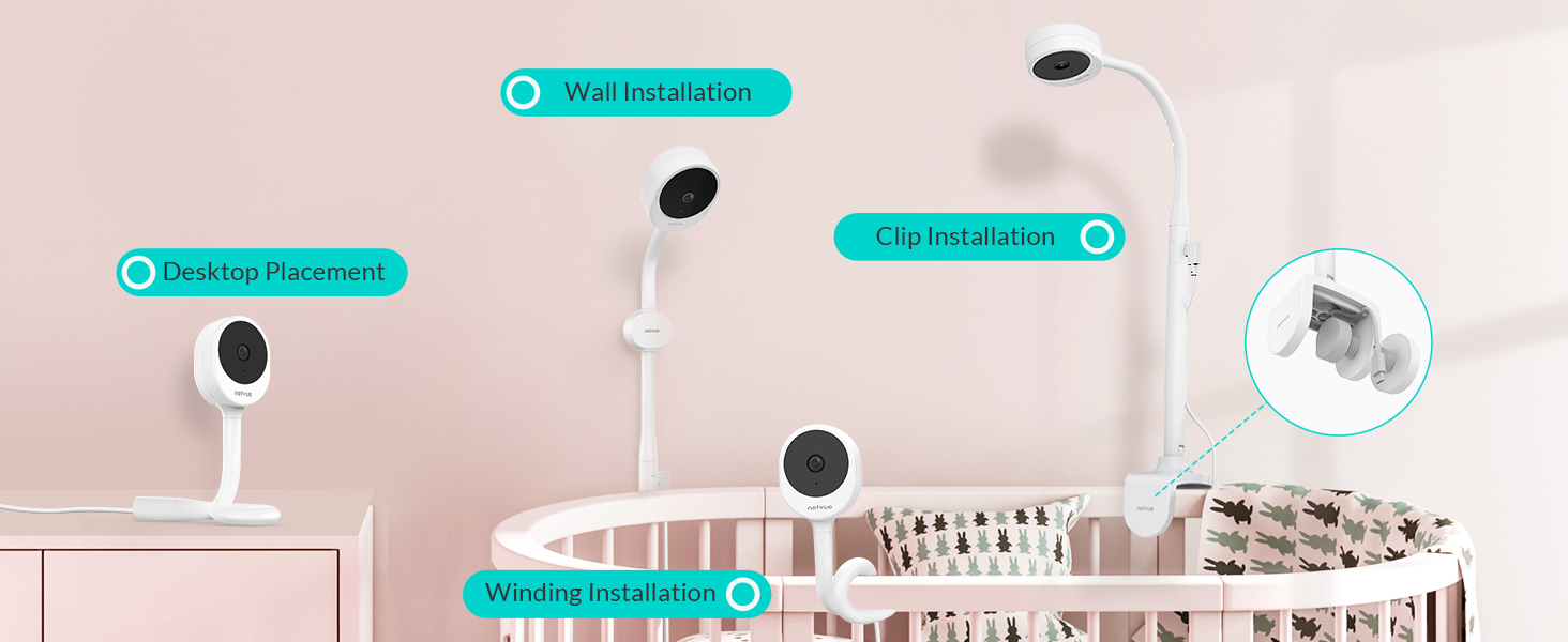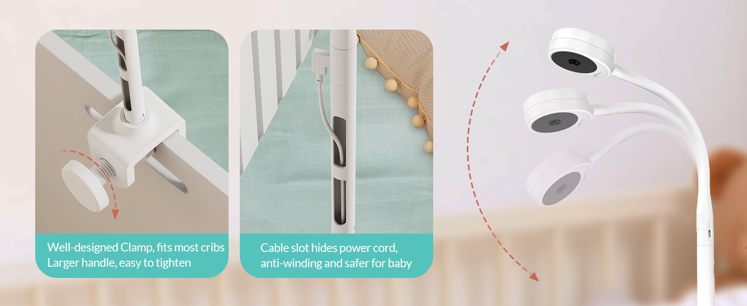 - Unique Stand Set-Fits All Baby Cribs: Netvue baby monitor's unique stand fits all types of cribs, from cloth to square, round, and more