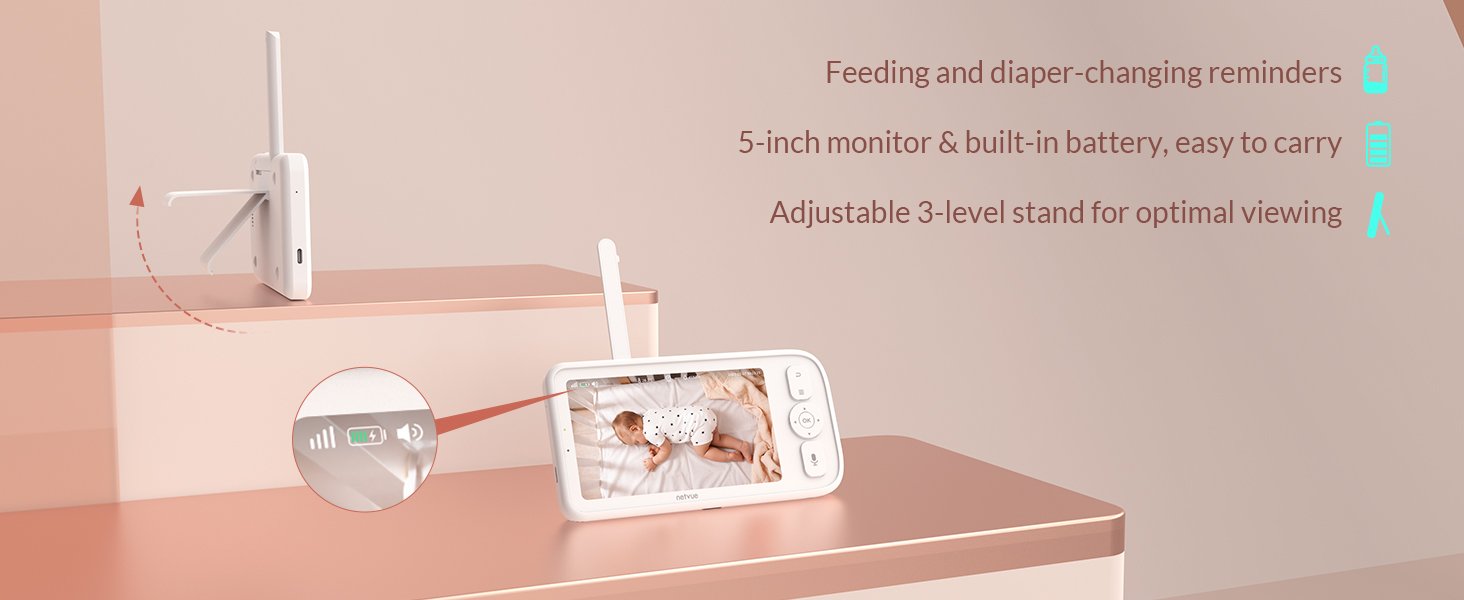 - 5-inch HD Screen: Netvue Baby monitors feature a 5-inch HD screen and a durable 3000 mAh battery at home; On the go, you can also keep an eye on your baby by connecting the camera to your smartphonec