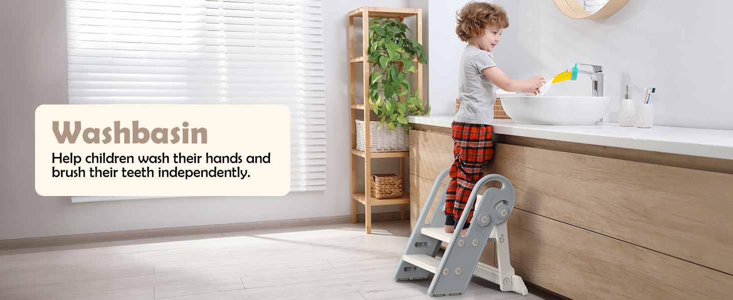 - ✨【Easy to Assemble and Clean】No additional tools are needed, and the assembly can be completed in 10 minutes. The childrens step stool is very easy to clean, just a simple wipe.