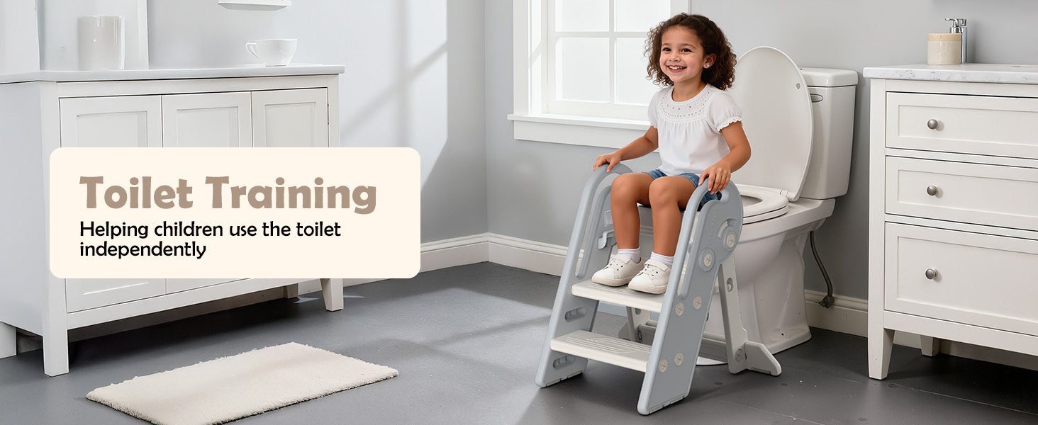 - ✨【Stable with Double Anti-Slip Design】Our step stool for kids are made of non-toxic PE, durable and without BPA. Considering the safety of babies, there are anti-slip strips at the bottom of the steps, which can firmly grip the ground, making it solid, durable. Moreover, the well-designed "A" type stable structure, extended support board and easy-to-grip double handles without burrs, allowing your baby to start an independent journey with confidence.