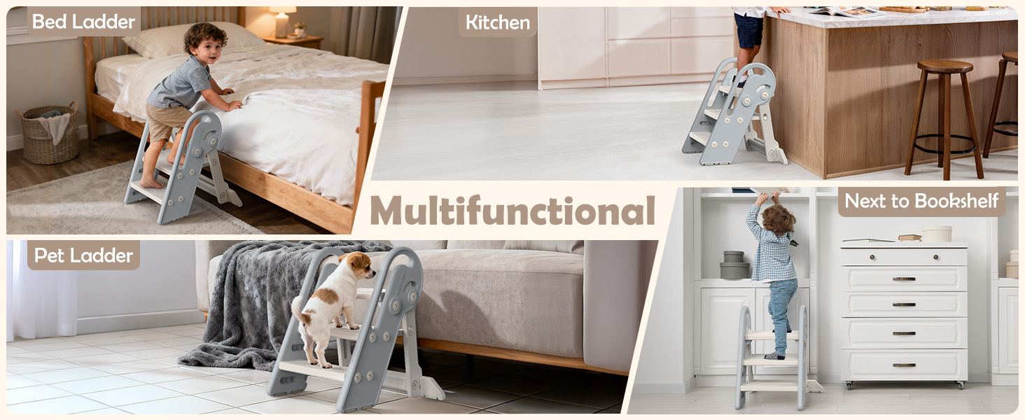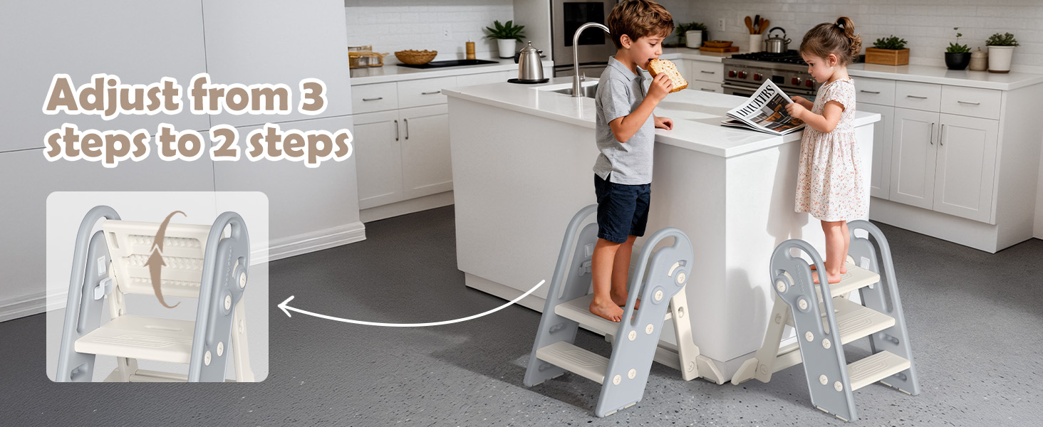 - ✨【Height Adjustable】The top panel can be easily turned 270, our 3 step stool will be converted into a 2 step stool for kids! Onasti toddler step stool is suitable for Children at 1.5-8 years old.