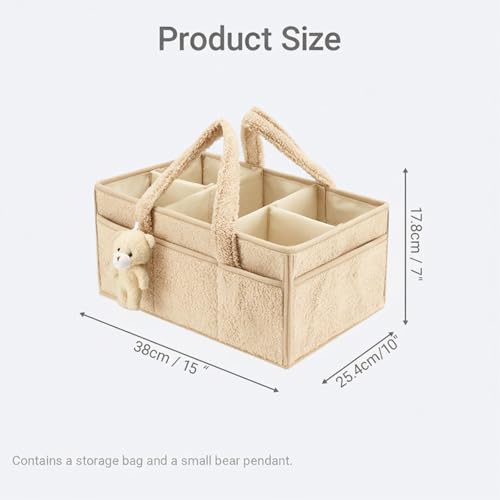 Care Guidelines: Hand wash recommended; Do not use bleach; Tumble dry on low heat; Low-temperature ironing if required Included Items: 1 Nappy Caddy Organiser, 2 Removable Dividers, 1 Detachable Bear Charm