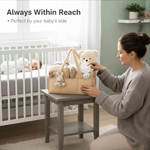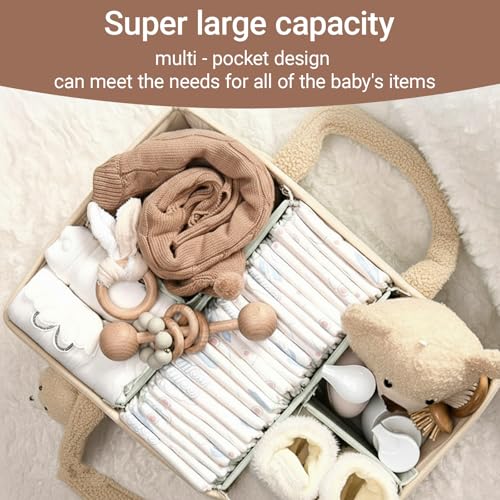 - Soft Durable Material: Made with a plush Sherpa outer layer and soft fleece polyester liner, the caddy feels gentle against skin while being robust enough for daily use, safeguarding delicate baby items from scratches.