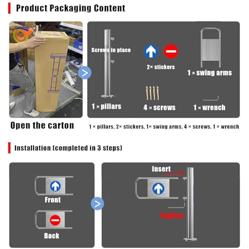 - 【1-WAY SWING DOOR】This Security Door features a unique revolving design, providing a robust barrier for enhanced safety. Equipped with an automatic closing function, it seamlessly returns to its original position after use