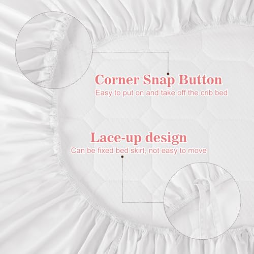 White Crib Bed Skirts with 4 Large Cot Bow Baby Crib Skirt for Boys Girls