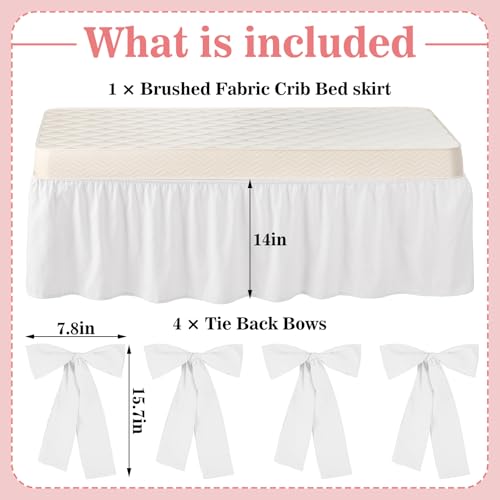 - Elegant Nursery Set: this stunning set includes 28 x 52 inch crib skirt with 14 inch drop and four 7.8 x 3.5 inch handcrafted bows; Suitable for effortlessly sprucing up your nursery, making it both stylish and functional for your baby's bed decoration